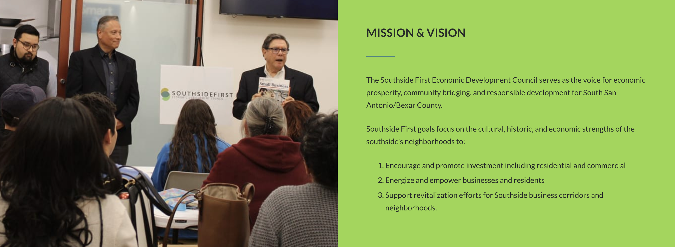 The Southside of San Antonio is growing rapidly and presents many opportunities for real estate development and rehabilitation of existing structures, but also for broad economic development of the community, including small business.